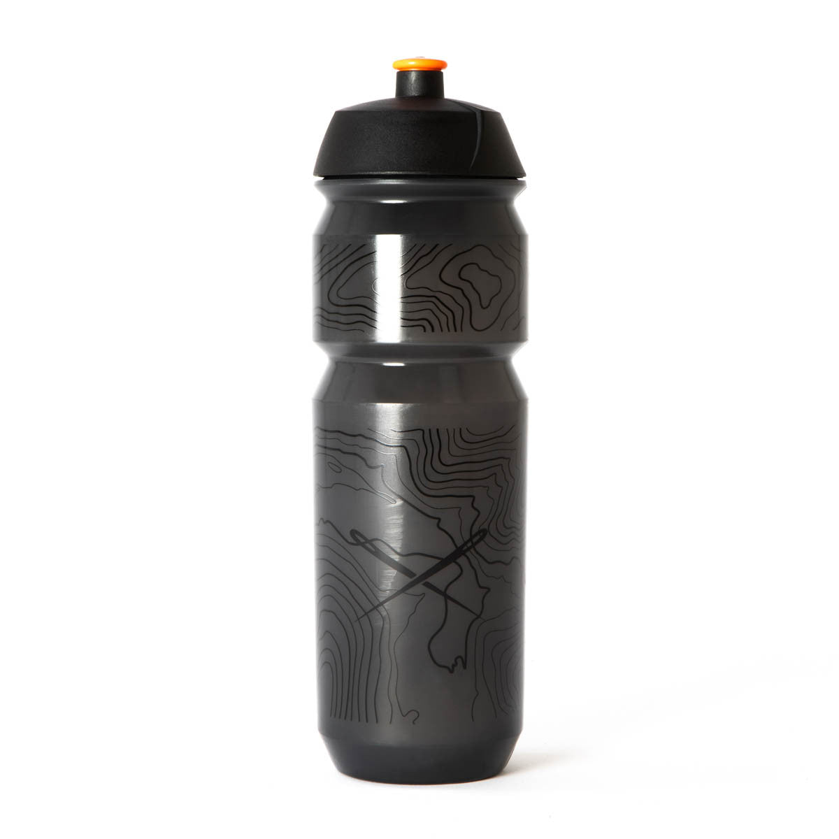 Restrapin topografisella kartalla kuvioitu isompi juomapullo, jossa on helppokäyttöinen ja pitävä korkki. Pehmeästä polyeteenistä valmistettu pullo on käytettävyydeltään hyvä kovassakin ajossa.